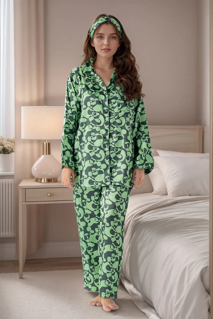 5 pcs Luxury Loungewear - Grassy (Shirt+Trouser+Hair Band+Eye Masks+Pony) (Copy) (Copy)