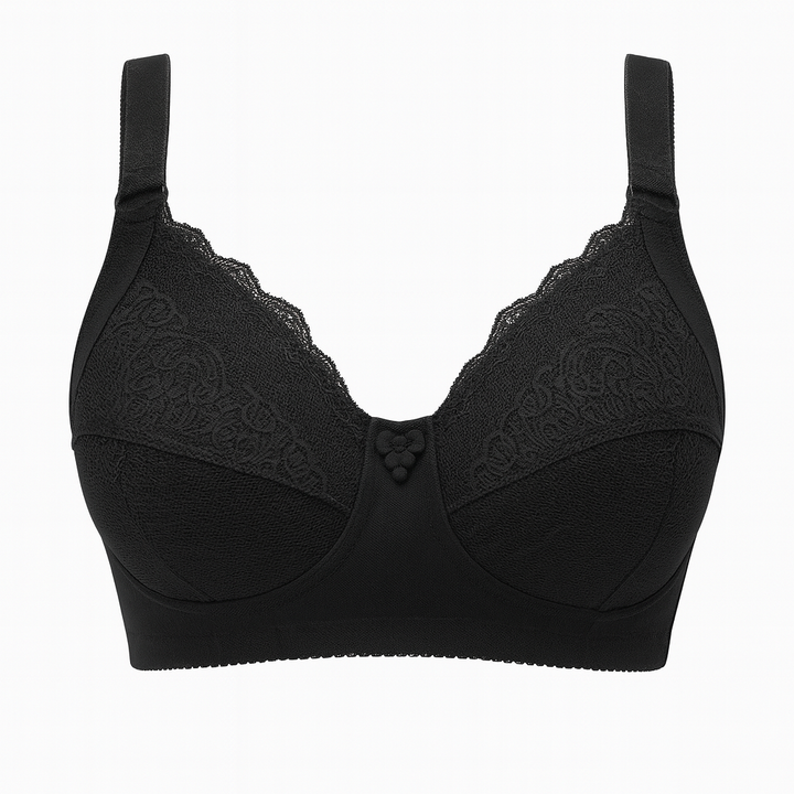 Black Curvy All Over Lace Cup Double Layered Bra with 4x4 Hooks